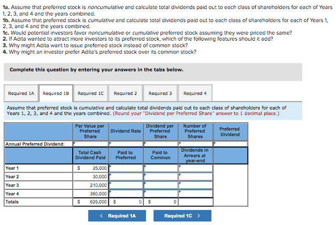 Solved 1a Assume That Preferred Stock Is Noncumulative And Chegg Com