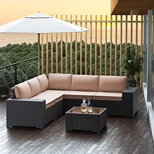 Amazon Com Rtdtd Outdoor Patio Furniture Set 6 Pieces Outdoor Furniture All Weather Patio Sectional Sofa Pe Wicker Modular Conversation Sets With Coffee Table 5 Chairs Seat Clips Brown Patio Lawn Garden