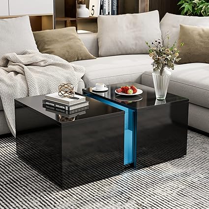 Amazon Com Ikifly Modern High Glossy Coffee Table With 16 Colors Led Lights Retractable Hidden Compartment W Glass Small Size Led Sofa Storage Table For Living Room Tools Home Improvement